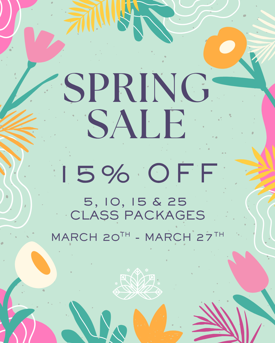 For a limited time, enjoy 15% OFF our 5, 10, 15 & 20 Class Packages